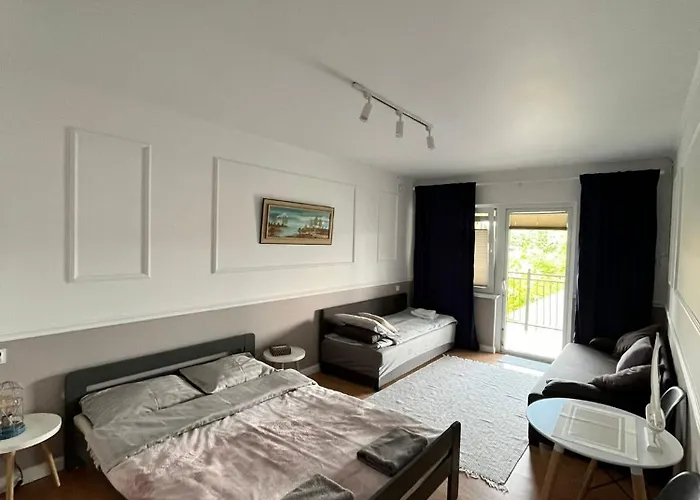 Apartamenty Przy Skwerku lägenhet ligger cirka 3 km från Muzeum Zalewu Wislanego. Oddzial Narodowego Muzeum Morskiego, och ståtar med utsikt över staden. Stället har 1 sovrum, 1 badrum och en terrass.